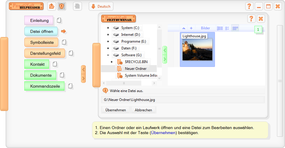 - Öffnet eine Hilfedatei, die vom Programm "HelpWriter" erstellt wurde