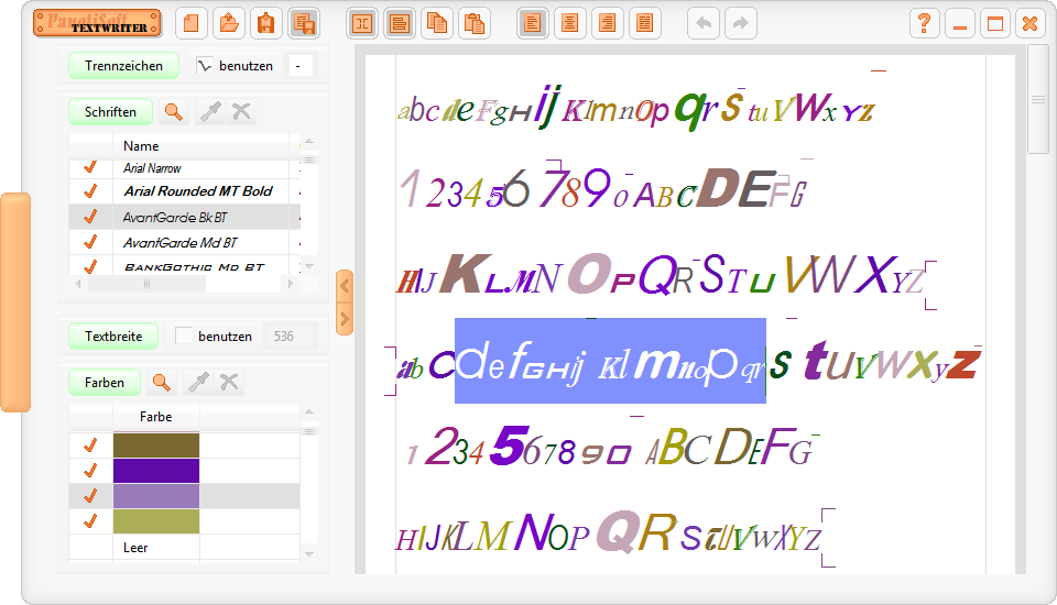 - Maximal 255 Schriftarten und Farben in einem Dokument